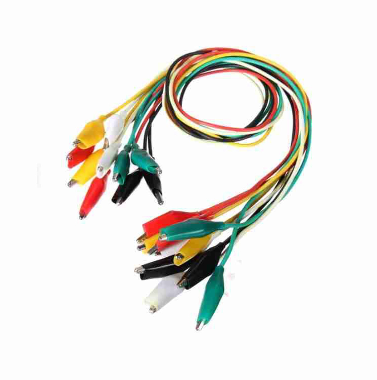كابلات بطول 50 سم بخمسة ألوان، مزودة في كل طرف بمشبك تمساح مصغر.